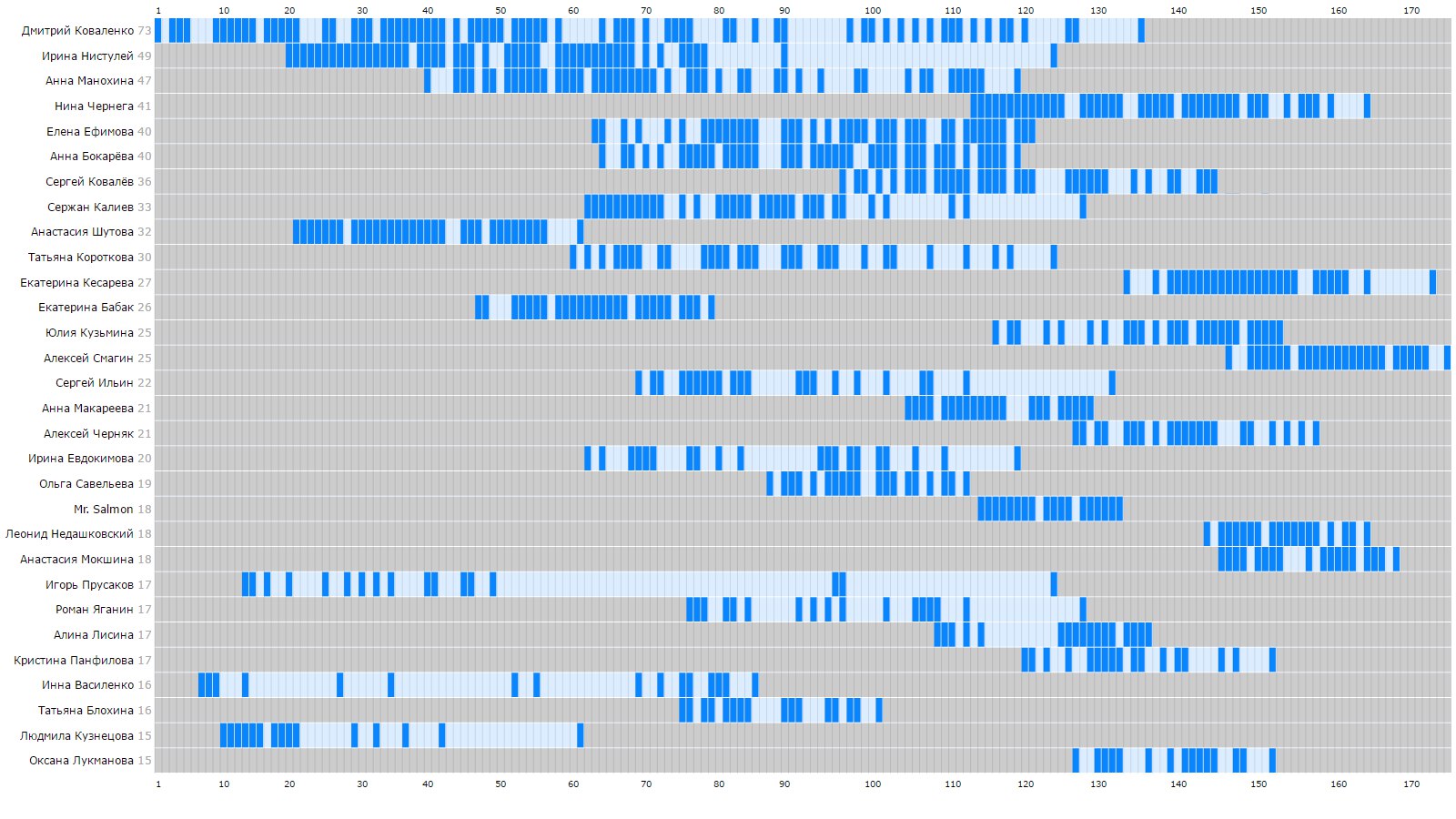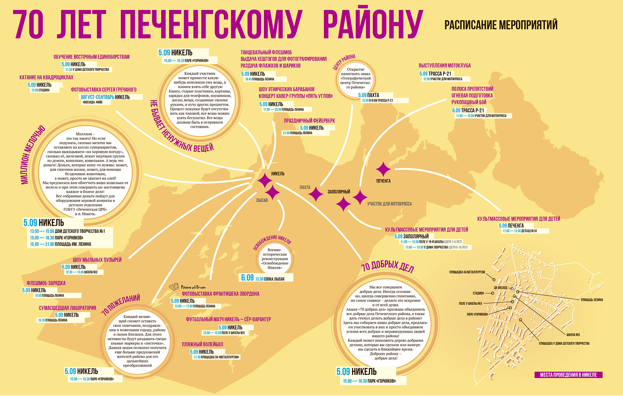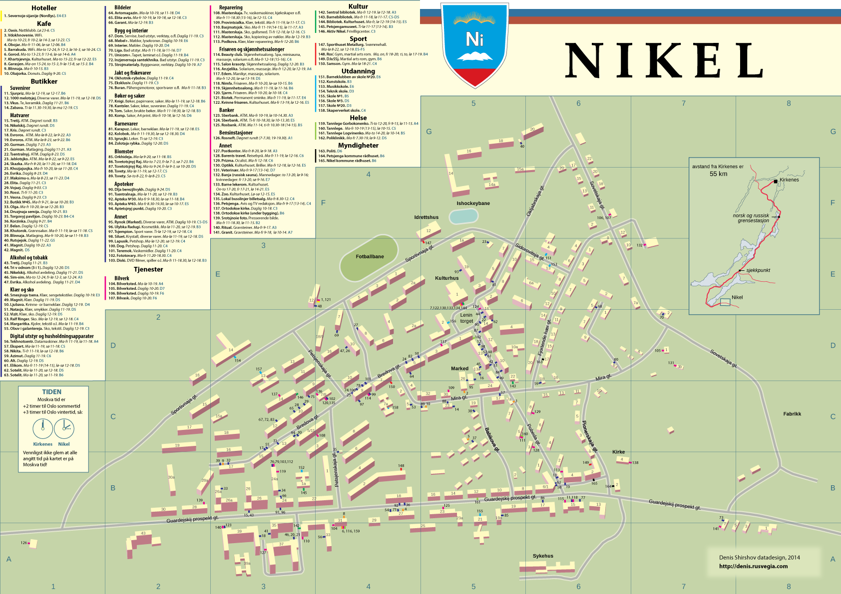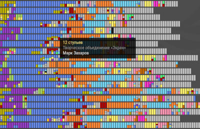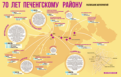 Авторы ИнверсииВизуализация активности корреспондентов студенческой газеты Инверсия по номерам.2017Сочетаемость знаков зодиакаЧто говорит ВКонтакте насчёт сочетаемых и несочетаемых пар по гороскопу? Подтвердится ли статистика нескольких тысяч пар?2016Все советские фильмыКликабельная визуализация почти всех советских фильмов по годам и жанрам2016Рак молочной железыНекоторая статистика рака молочной железы в России для журналаABV-press2016Выборы в Областную ДумуВизуализация распределения голосов за политические партии при выборах в Думу Мурманской области.Thebarentsobserver.com2016Карта праздничных мероприятий70-летие Печенгского района. Разворот в газету.Газета Печенга2015Сирийские беженцы на российской границеМатериал о войне в Сирии, и вызванном ею потоке беженцев, который хлынул в Европу не только с юга, через Турцию, но и через наш российский север, через Мурманск и Никель.Газета Печенга2015Муниципальные проекты в районеГазетный разворот, посвященный проектам развития инфраструктуры в Печенгском районе.Газета Печенга2015Карта активностей проекта Dark EcologyПроект, исследовавший урбанистические ландшафты российско-норвежского приграничья. Данный макет был предназначен для распечатки на листах формата А3 и раздачи участникам проектного рейда.Dark Ecology2015Пересечения границыГрафик показывает динамику роста зарегистрированных пересечений границы из России в Норвегию или обратно.Sør-Varanger Avis2014«Старорежимная» карта ПриграничьяСтилизованная под старую карта российско-норвежско-финского приграничья с названиями населенных пунктов и описаниями made just for lulz.2014Карта Никеля---Barents Travel2014Автобусные маршруты ЗеленоградаКогда я жил в Зеленограде, никак не мог уложить в голове его автобусные маршруты. Решил их визуализировать. Это прояснило ситуацию. И не столько конечная визуализация, а скорее, сам процесс рисования.2013Карта Заполярного---SIVA2012